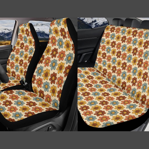 Retro Seat Cover For Car Full Set Cute Smiley Flower Car Seat Etsy Australia